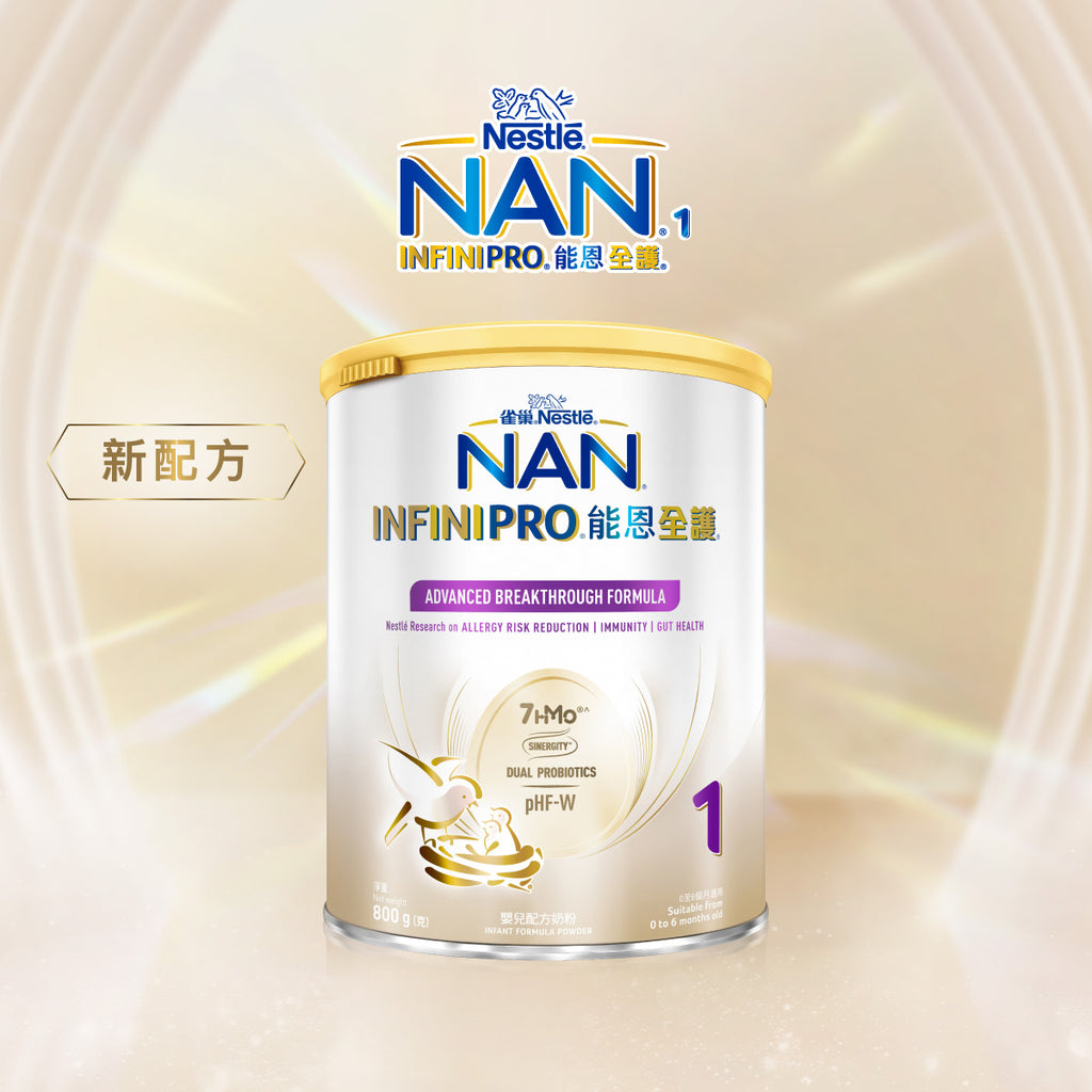 雀巢運用超過155年的科研知識,助寶寶減低過敏風險,同時支持免疫力及腸道健康。雀巢®能恩全護®配方奶粉除蘊含水解蛋白pHF-W,更融匯2種雙歧益生菌及7HMOs^,有助鞏固免疫基礎,極緻母愛全護力!